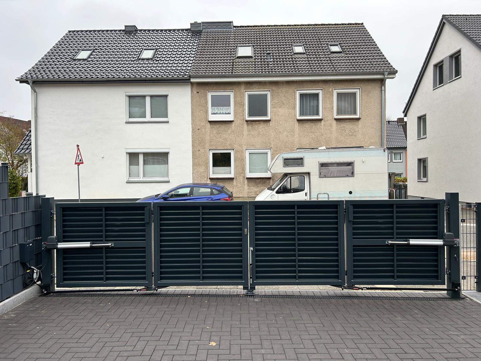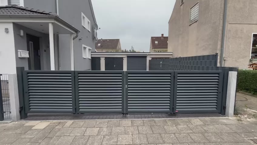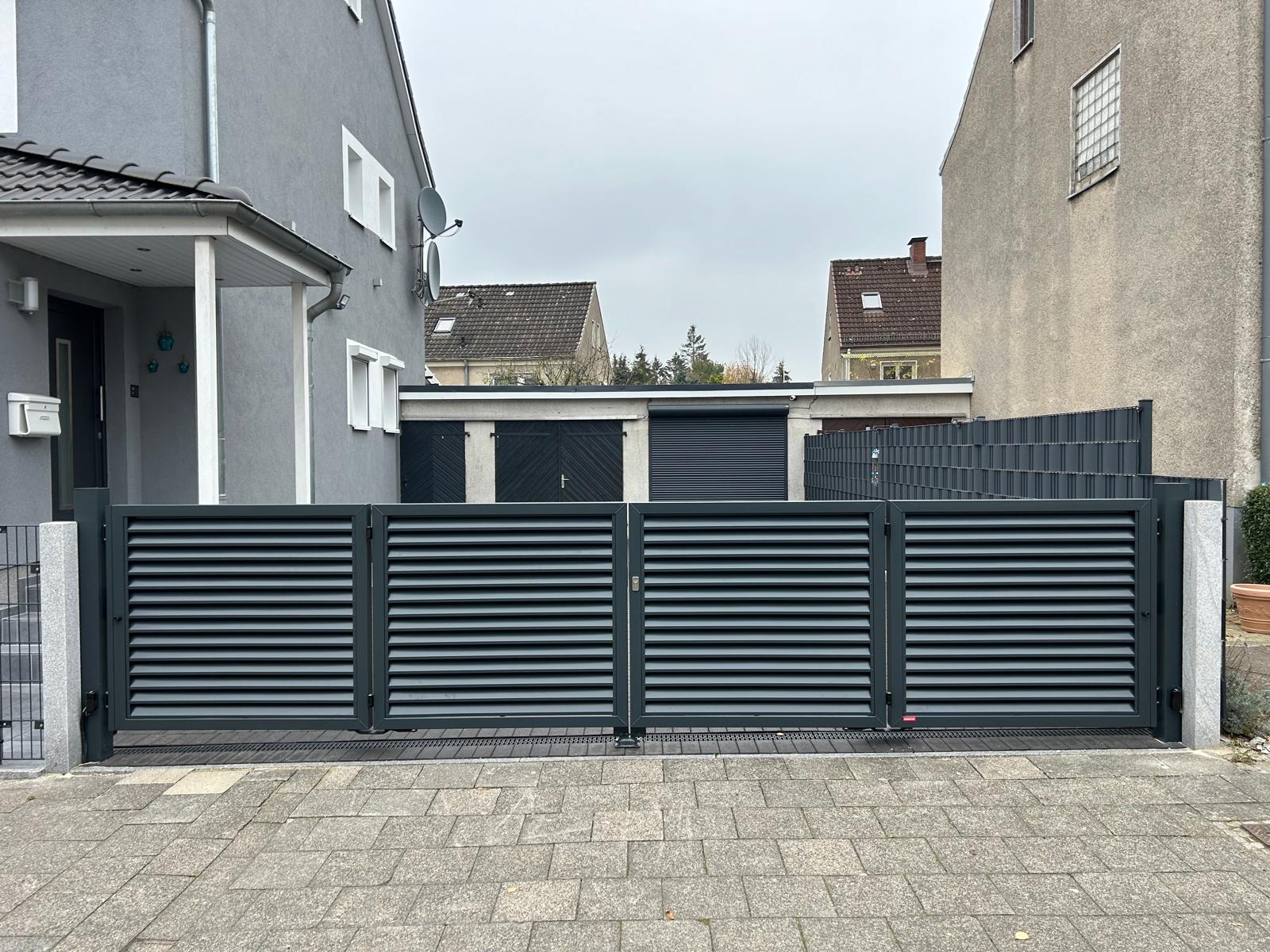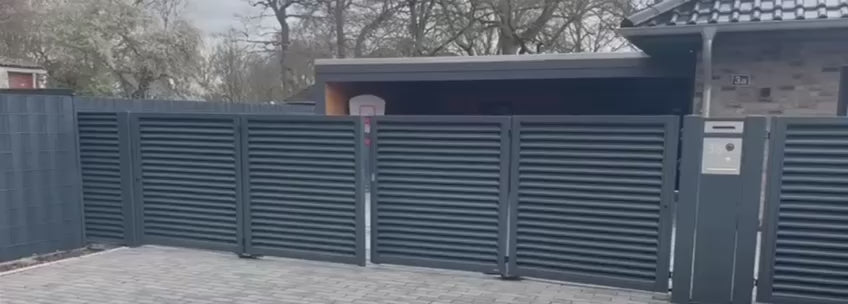 Verleihen Sie ihrem Grundstück einen neuen Anschliff, mit dem Falttor Hannover. Dieses Premium-Tor ist in verschiedenen Farben erhältlich und wird individuell für Sie nach Wunschmaß angefertigt. Um den Trends der modernen Architektur gerecht zu werden, haben wir ein Zaunsystem entwickelt, welches dieser Architektur standhalten wird. Das Gestell dieses Hoftors wird aufgrund der charakteristische Lattenaufstellung umgangssprachlich auch "Jalousie" genannt. Das Modell Hannover gewinnt dank seiner untypischen und modernen Stilistik immer mehr an Popularität und fügt sich perfekt in moderne Grundstücke ein. Die Kombination des ALUZINK-Blechs und des Farbanstrichs versichern langjährigen Korrosionsschutz. Dieses Falttor ist Teil unserer Premium-Serie "Hannover" und wird hervorragend durch unsere Zaunelemente und Pforten ergänzt.